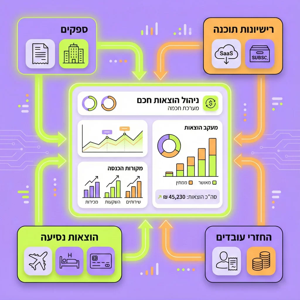 חברות הייטק מנהלות הוצאות רבות מול ספקים בארץ ובחו״ל, עובדים, שירותי תוכנה, רישיונות, נסיעות והוצאות תפעול נוספות, לצד הכנסות ממספר מקורות. ריבוי הנתונים מחייב מערכת חכמה ומסודרת.